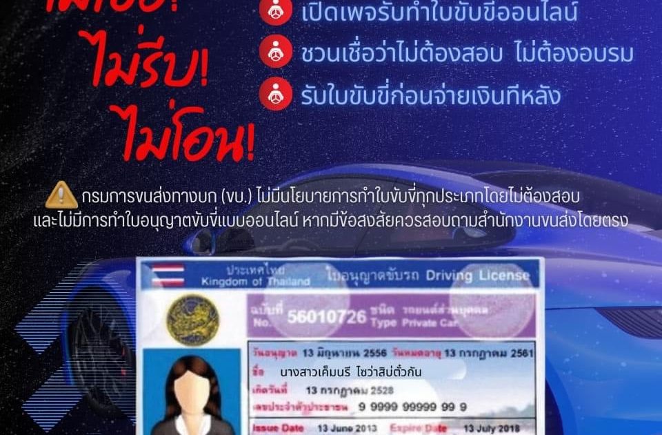 อ้างสำนักงานขนส่ง รับทำใบขับขี่ออนไลน์ 27 ธันวาคม 2566 โดย admin / ข่าวประชาสัมพันธ์ Facebook iconFacebookTwitter iconTwitterLINE iconLine