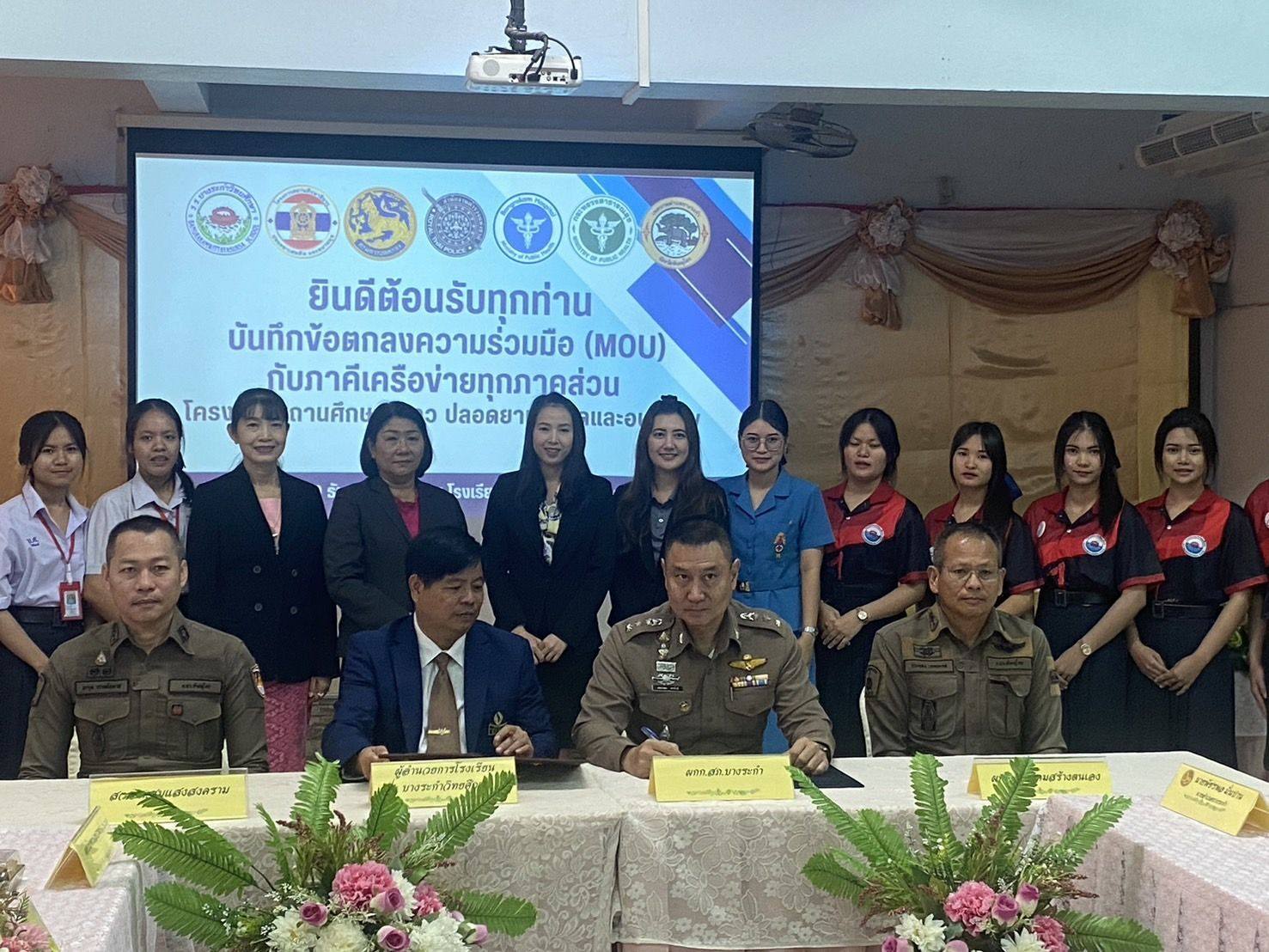 วันที่ 19 ม.ค.68 เวลา 09.00 น. พ.ต.อ.สมเกษม จารักษ์ ผกก.สภ.บางระกำ ได้ร่วมลงนามบันทึกข้อตกลงความร่วมมือ(mou) กับภาคีเครือข่ายทุกภาคส่วน และหน่วยงานในพื้นที่อำเภอบางระกำ จังหวัดพิษณุโลก โดยมี นายพัชรพล มั่นปาน นายอำเภอบางระกำ เป็นประธาน ตามโครงการสถานศึกษาสีขาว ปลอดยาเสพติดและอบายมุข เพื่อเพิ่มประสิทธิภาพในการป้องกันปราบปรามและเฝ้าระวังปัญหายาเสพติด สร้างความปลอดภัยให้กับนักเรียนจากภัยคุกคามรูปแบบใหม่ทุกรูปแบบ ณ โรงเรียนบางระกำวิทยศึกษา